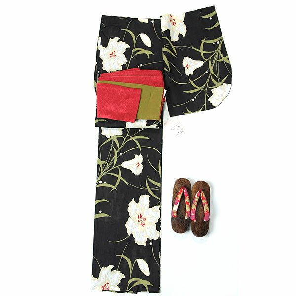 お色目: 浴衣:地色 黒系 帯:赤系 ※最善の色再現をしていますが、ご利用の環境でお色目が多少異なる場合がございます、ご了承下さい。