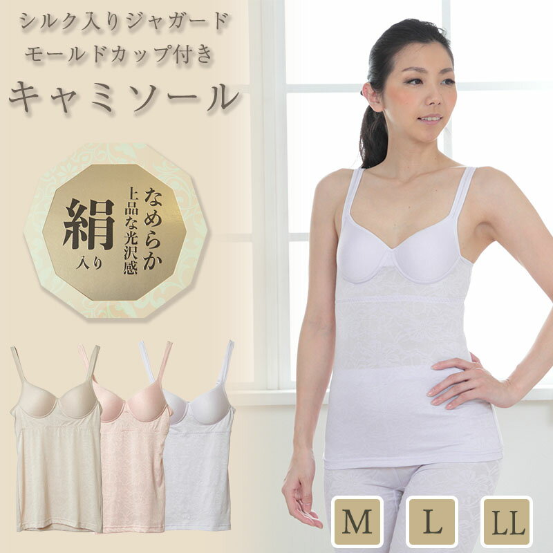 カップ付き キャミソール シルク レディース インナー M〜LL (ブラトップ カップ付きインナー ブラキャミ モールドカップ モールドブラ シャツ)